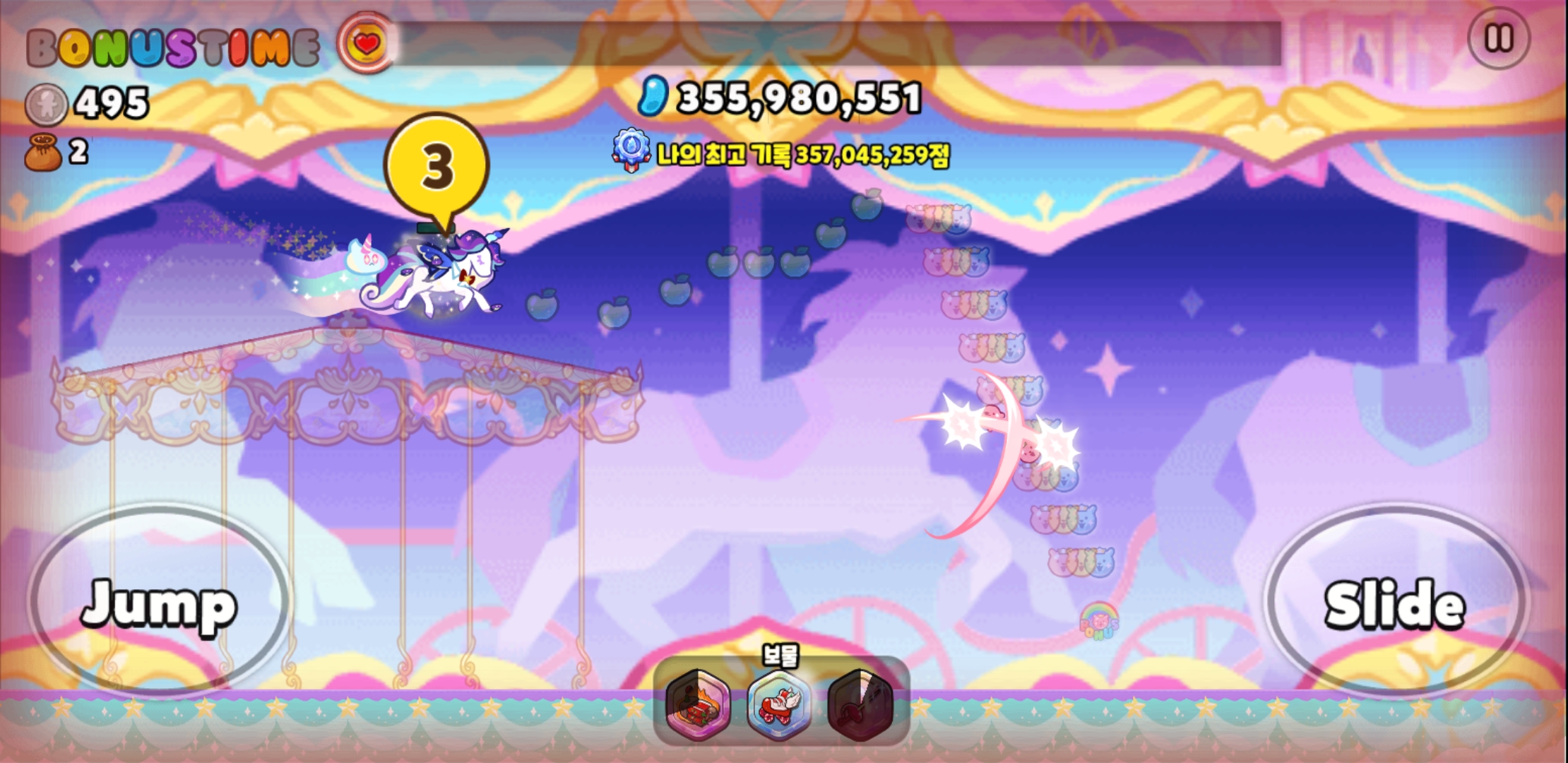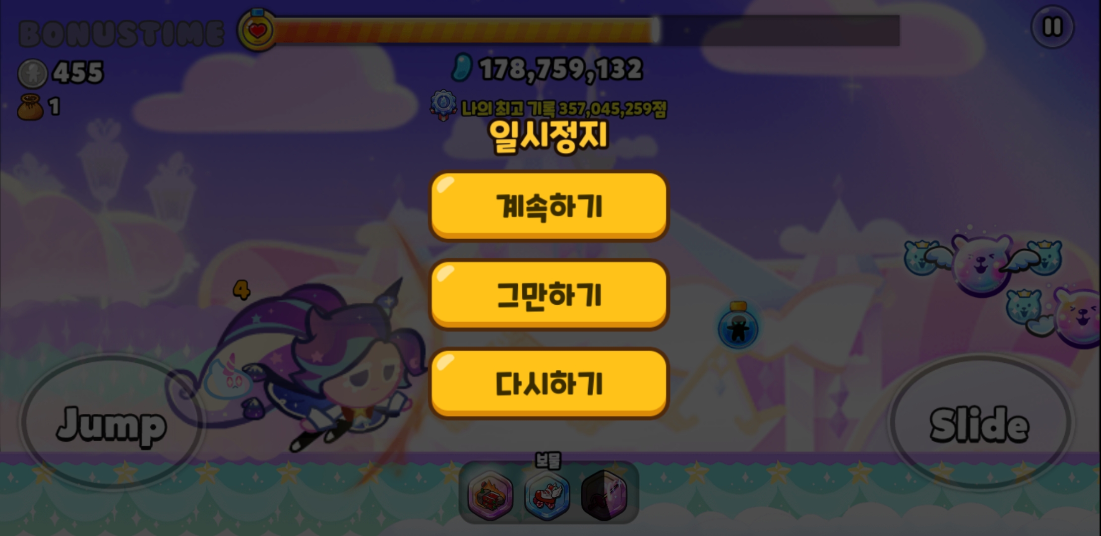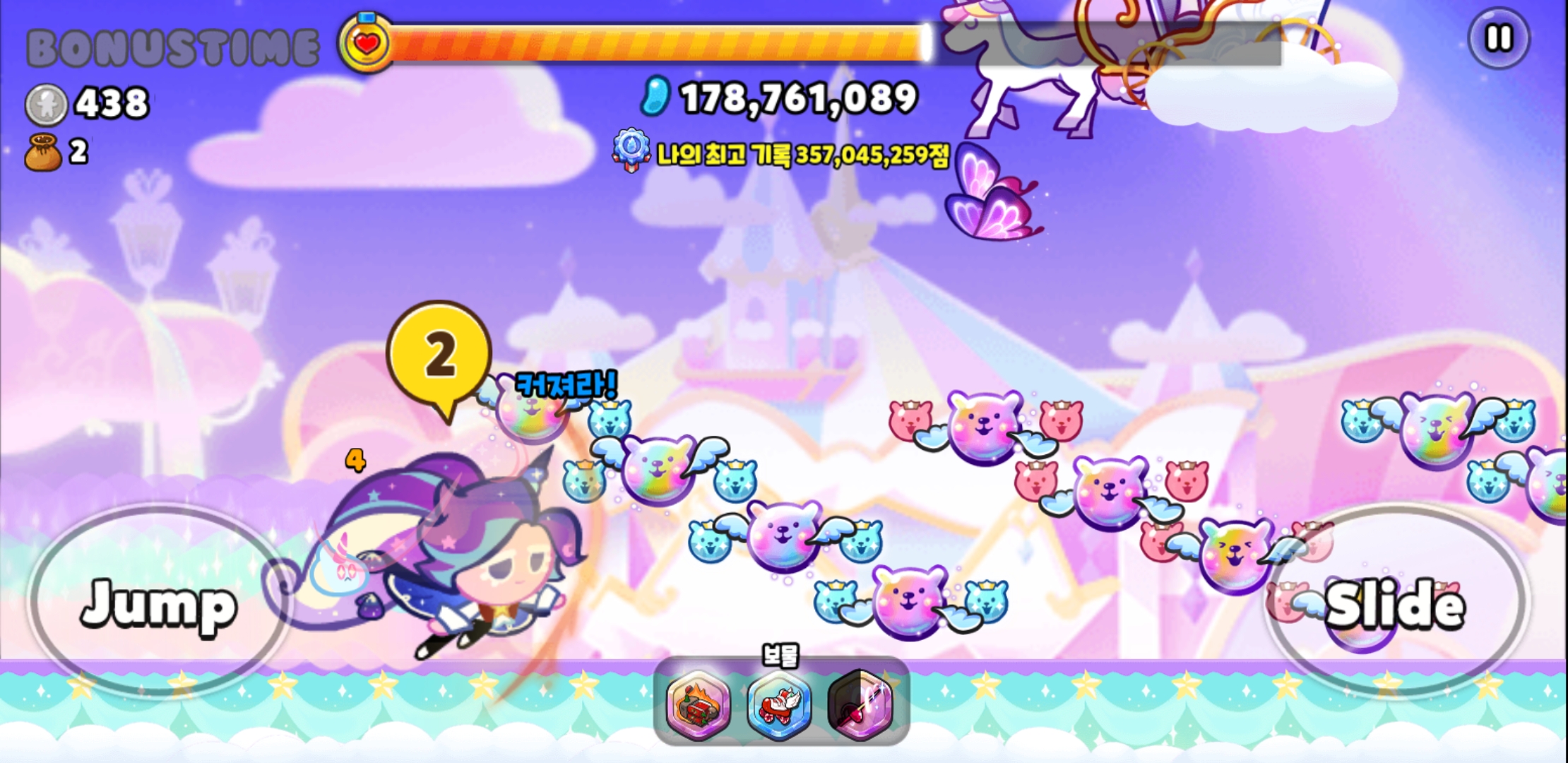 머랭구름을 먹으면 막변해서 무난히 이 구간까지 올 수 있는데, 바로 앞에 저 보너스타임만 먹으면 상위5퍼 백퍼 가능입니다.