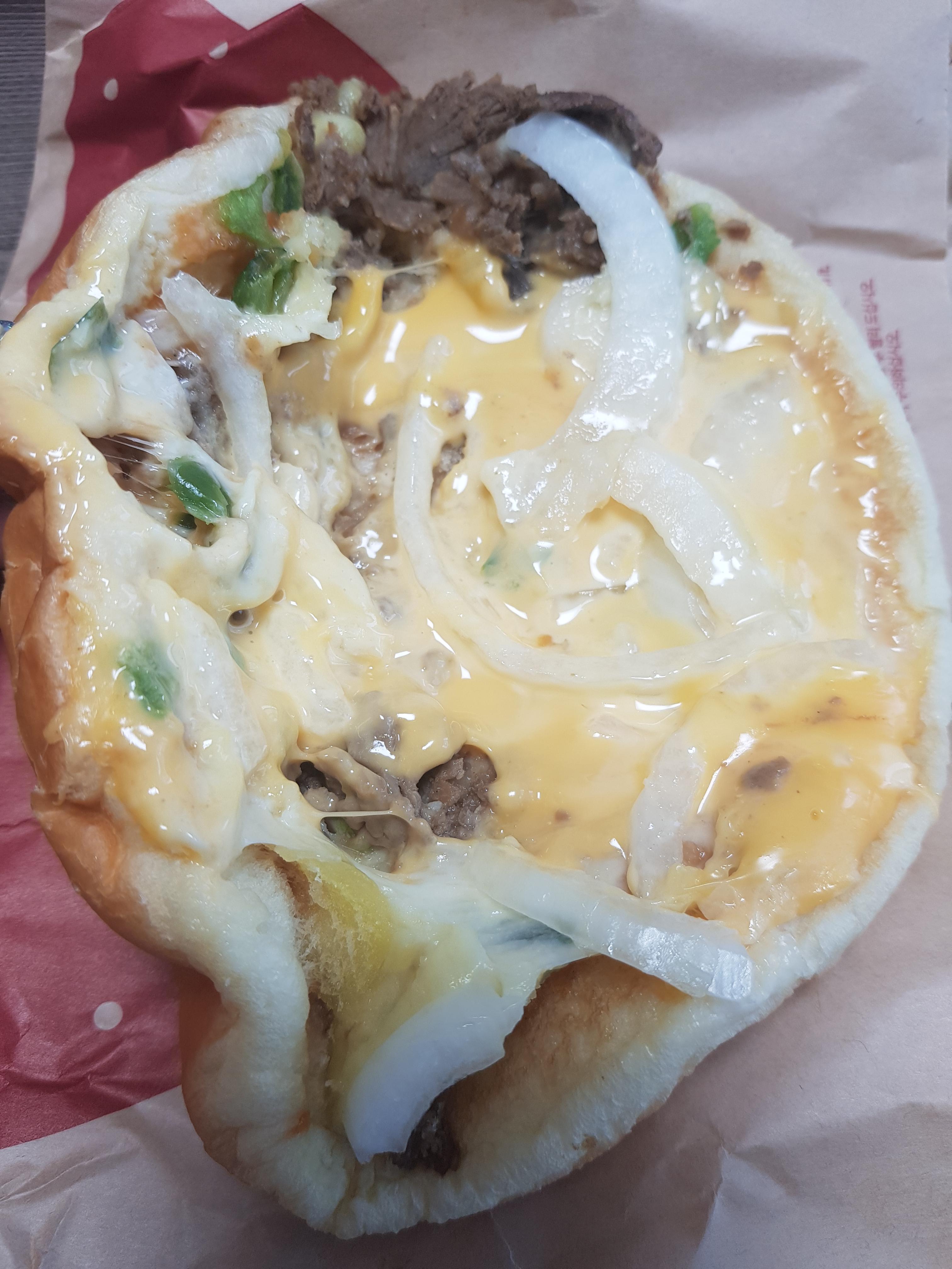 양념소불고기를 불고기버거 빵에 넣어서