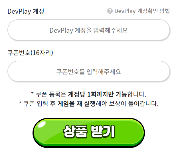 ☆ 쿠폰입력창 : game.devplay.com/coupon/ck/ko